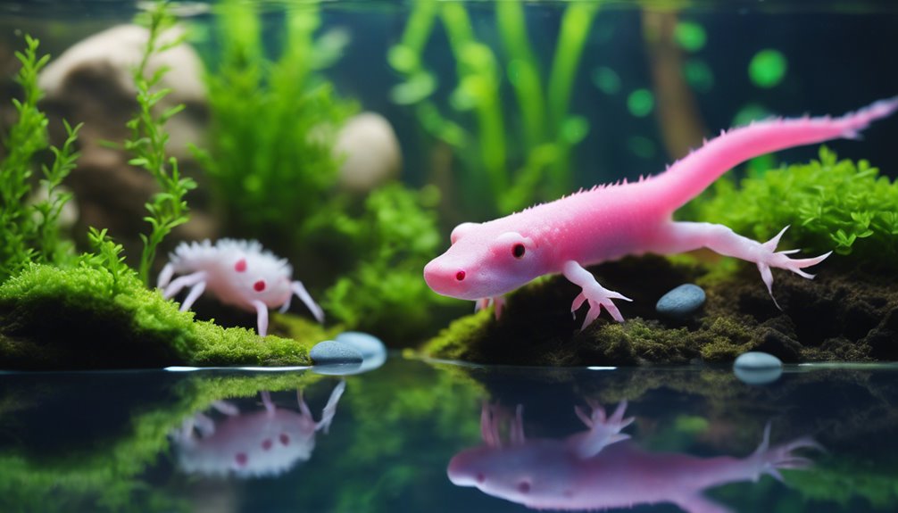 Aby zorganizować akwarium dla swojego aksolotla, zacznij od minimum 20-galonowego zbiornika, zapewniając dużo przestrzeni. Użyj drobnego, gładkiego piasku jako bezpiecznego podłoża i dołącz groty, drewno i rośliny o miękkich liściach jako miejsca do ukrycia. Utrzymuj temperaturę między 60-68°F i zapewnij delikatny przepływ wody za pomocą filtrów gąbkowych. Regularnie testuj jakość wody pod kątem pH, amoniaku, azotynów i azotanów, dokonując niezbędnych korekt. Wprowadź odpowiednie oświetlenie w cyklu 10-12 godzin, aby wspierać wzrost roślin bez stresu cieplnego. Postępując zgodnie z tymi wytycznymi, stworzysz kwitnące środowisko dla swojego aksolotla, a to dopiero początek!